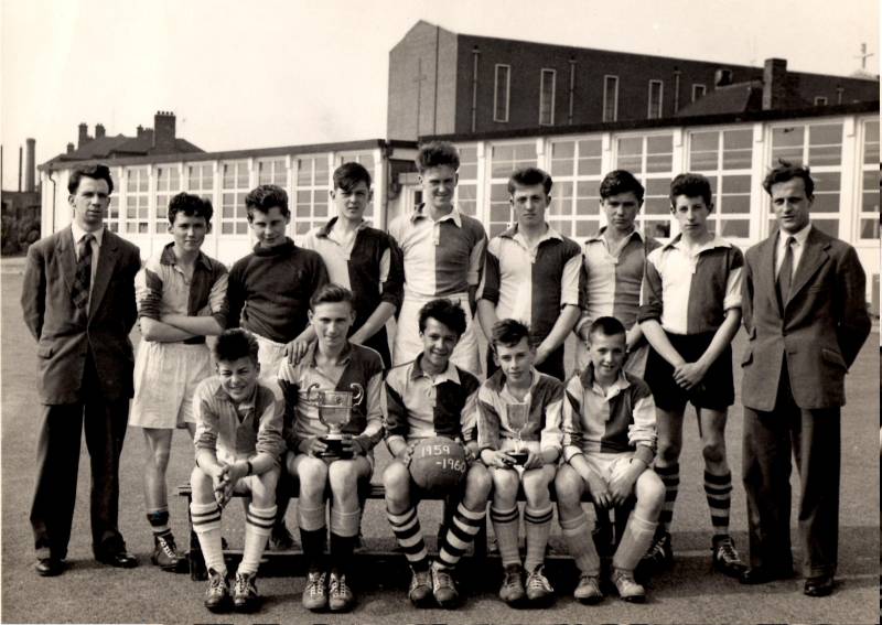 Taken from the 1960 School Magazine "The Review"FIRST XICongratulations to our First XI of the 1959-60 season. They have good reason to be proud of themselves, having gone the whole season without defeat. This, the last team of the old Stanfield Technical School, has indeed set a fine example to those who will follow in the new school, an example that will be difficult to equal in spite of the wonderful facilities that are to come. At the start of the season we expected to have a good team, having a fair nucleus from the '58-'59 team, and some good material coming from the Colts, but they combined to form a team far superior to our expectations. As captain we were fortunate to have Rutter once again. In the previous season he had established himself as a fine captain and out standing player. This season he even improved on his former showing and had the full confidence of the team from the start. A special word for Rutter for having lead the team through such a successful season. In Rutter's absence, Palfreyman took over the captaincy most efficiently. G. GLOVER.FIRST XI FOOTBALL REPORT. SEASON 1959-60The team for the 1959-60 season was outstanding, being undefeated throughout. The team played so well that it is very difficult to single out any matches. However, there are two games worthy of special mention. The first game was played against Crewe Grammar School at Crewe. The pitch was very heavy and the top surface very slippery. Both teams found the conditions very difficult and many well meant passes went astray. Both goalkeepers were kept very busy throughout the game. It was a backward and forward struggle, with our team coming out with the honours with a narrow one goal to nil win, Hunt scoring the only goal. This was our first win at Crewe for many years. The second game was played against Nantwich Grammar School at Nantwich. This game was played on a hard, dry pitch with a very lively ball. After some good opening moves by both sides the game settled down to a hard battle of thrustful attacks and hard defensive tackling. Johnson, after avoiding a hard tackle, put through a defence splitting pass for Hunt to run on to score the first goal. A few minutes later Johnson shot from the edge of the penalty area just past the outstretched fingers of the Nantwich goalkeeper to score our second goal. After half-time, Nantwich hit back quickly, scoring two goals in